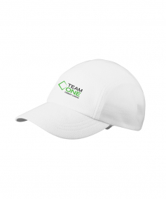 Sweat wicking, lightweight, breathable with 100% poly closed-hole mesh. Terry sweatband, 5 panel, unstructured, with low profile that stays secure as you run. Black under bill to prevent glare. Reflective O heat transfer on side panel and webbing with buckle closure.